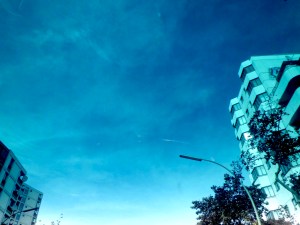 the tinted windshield of my car and beyond